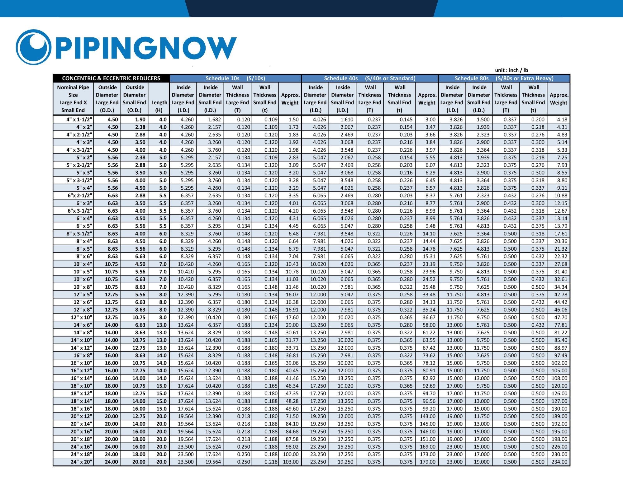 Stainless Steel Buttweld Fitting Dimension & Weight Info