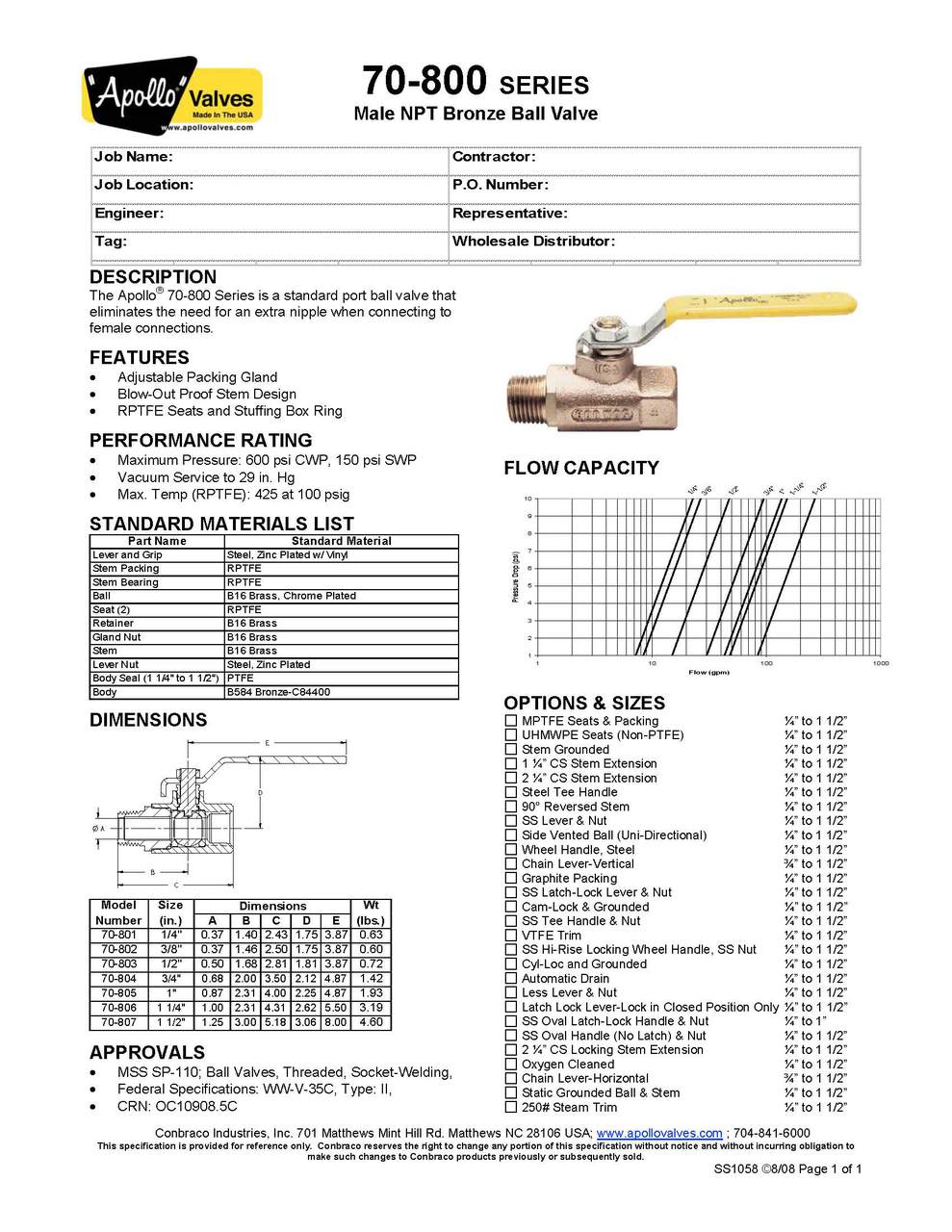 3/4" Ball Valve 600# WOG NPT Bronze Standard Port Apollo #70-804-01